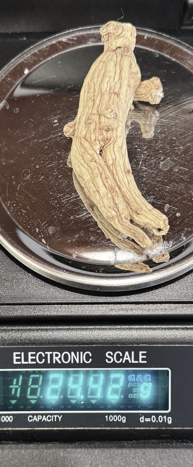 Ženšen, korejský, celý, bílý, 24,42 g, certifikovaný, rarita z Koreje