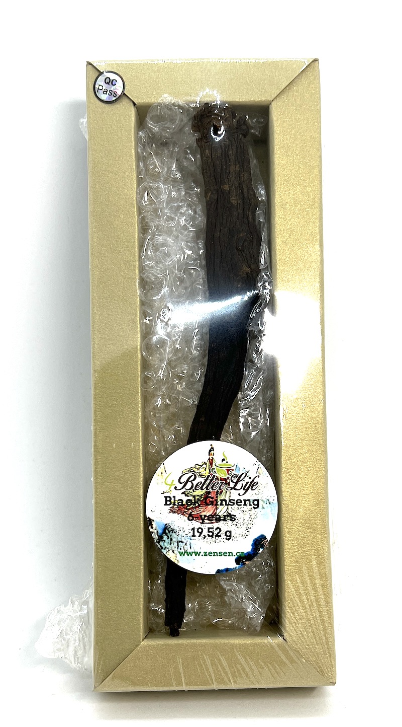 Jedinečná zásilka – distribuce do vyprodání zásob – secured and proof INSAM* – jen omezený počet balení, oveřeno. Velmi kvalitní černýkorejský ženšen pravý, sušený klasickou metodou - napařování a sušení na slunci po dobu 1 roku, 9 cyklů, 6letý. Černý korejský ženšen se pěstuje a suší pouze v Koreji a to jen zcela vyjímečně, má vyšší účinnost než korejský červený (díky vysoké koncentraci ginsenosidů)!