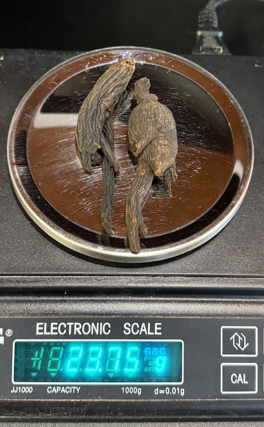 Ženšen, korejský, celý, ČERNÝ, 23,75 g, certifikovaný, rarita z Koreje