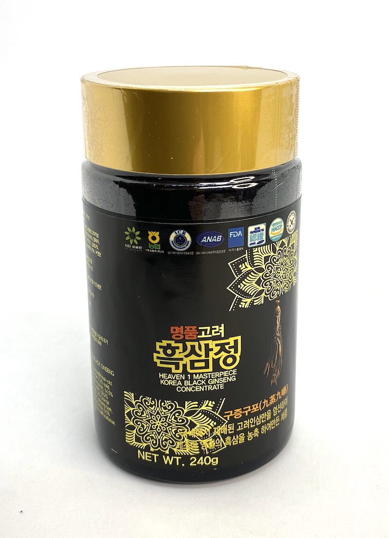 240 g extraktu 6letého korejského černého ženšenu v láhvi Jde o jeden z nejoblíbenějších extraktů na korejském trhu.