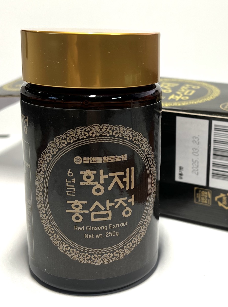Praktické balení v pevné lepenkové krabičce. Kvalitní extrakt z vybraných druhů korejského ženšene s příměsí extraktu bylin. Tento extrakt měl v údajně v oblibě japonský císař (Japonské císařství okupovalo Koreu v letech 1910 až 1945, kořeny japonského vlivu v Koreji však jsou mnohem dále v historii. O poměrech okupace pojednává např. seriál - Netflix - s názvem Pačinko). Z 6letého červeného kořene, s dávkovací lžičkou, 250 gramů, baleno ve skleničce. Extraktu ženšenu obsahuje 70mg/g ginsenosidů. Směs dále obsahuje cukr (med), extrakt směsi bylin jojoba, zázvor, pelyněk, mateřídouška, andělika, pivoňka, astragalus, reishi, lékořice (celkem 2%).